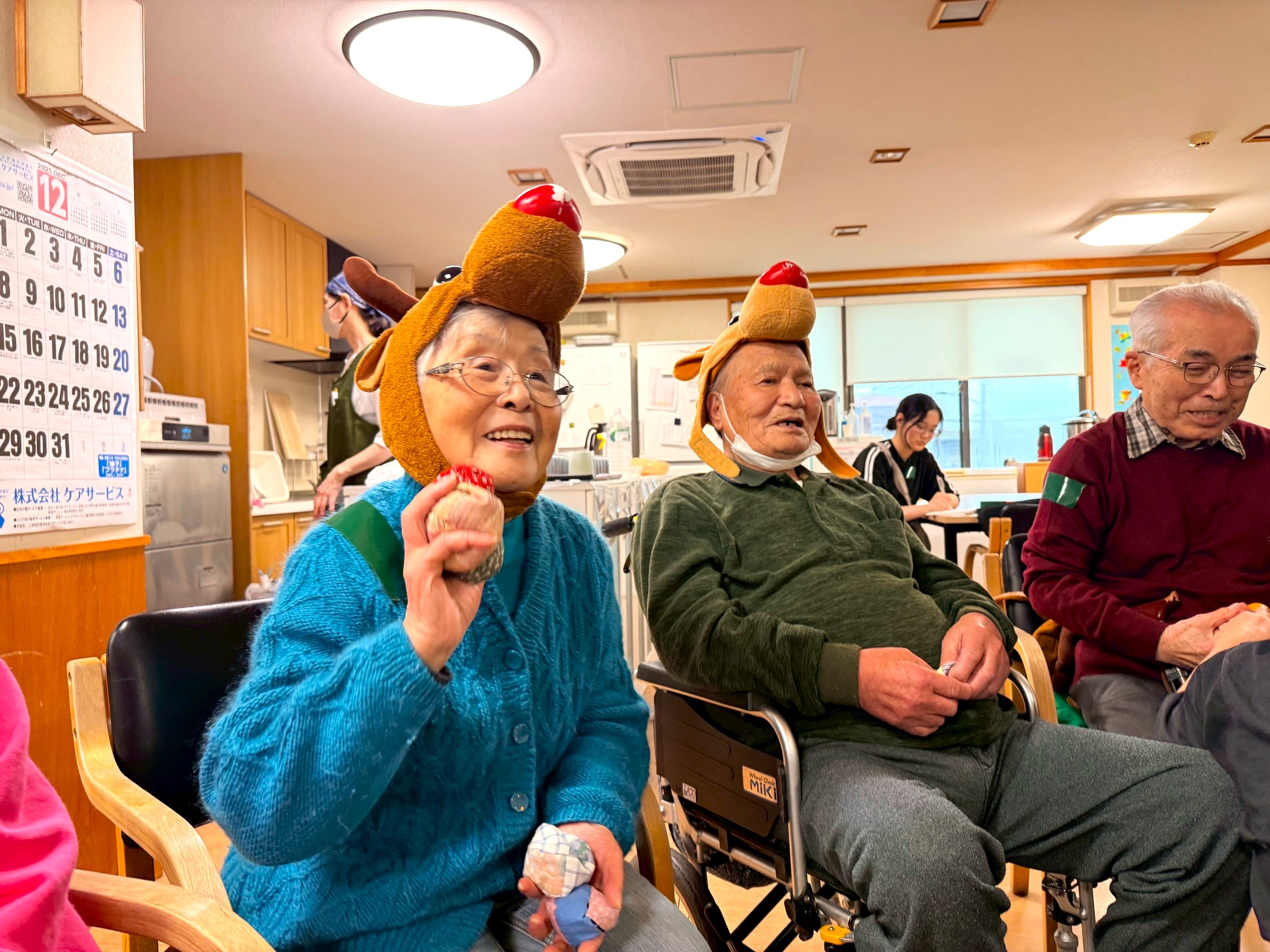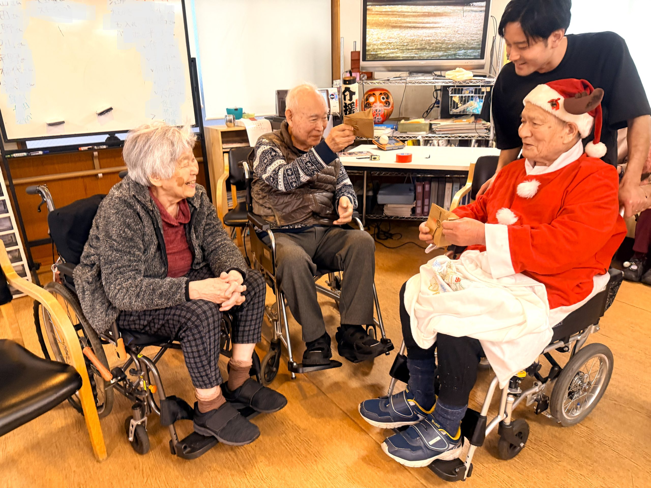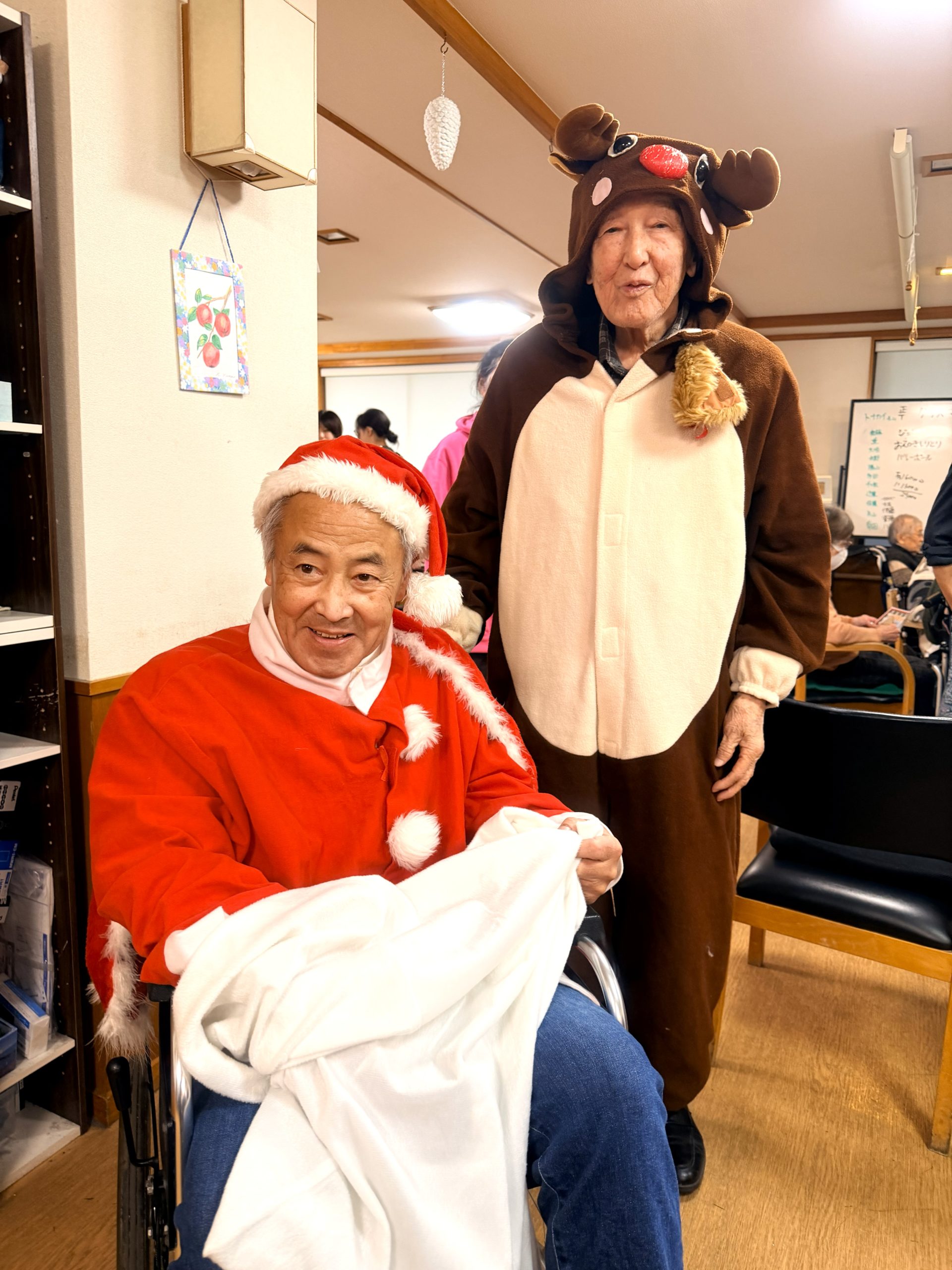 2025年12月 2026年2月9日 最終更新日時 : 2026年2月9日 介援隊 11月にひき続き紅葉と焼き芋を堪能しました。クリスマス会ではたくさんのサンタクロースとトナカイで盛り上がりました。年末には今年もお世話になったお寺や神社にお礼参りをして2025年もあっという間に過ぎてしまいました。 2025年も皆さんの笑顔をエネルギーに頑張ることができました。2026年も皆さんに楽しんでいただけるように頑張っていきます! Follow me! FacebookBluesky
